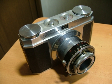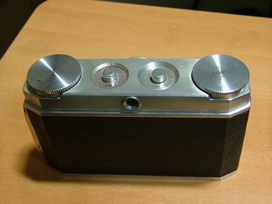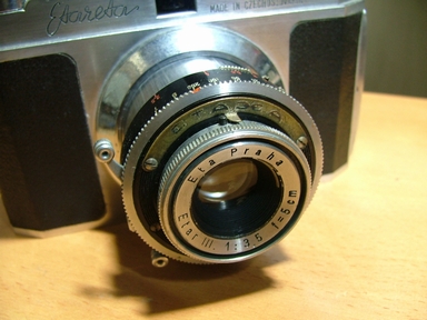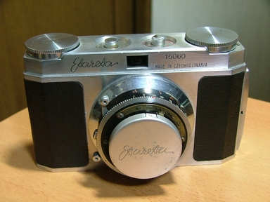 チェコスロヴァキアで生産された、沈胴式レンズを持つ目測式コンパクトカメラ、エタレッタです。